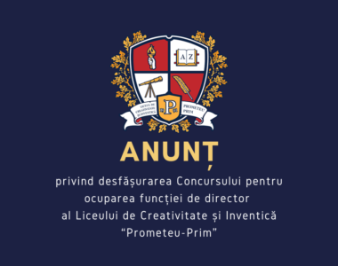 Centrul Experimental “Prometeu” anunță desfășurarea primei etape a concursului pentru ocuparea funcției de director al Liceului de Creativitate și Inventică